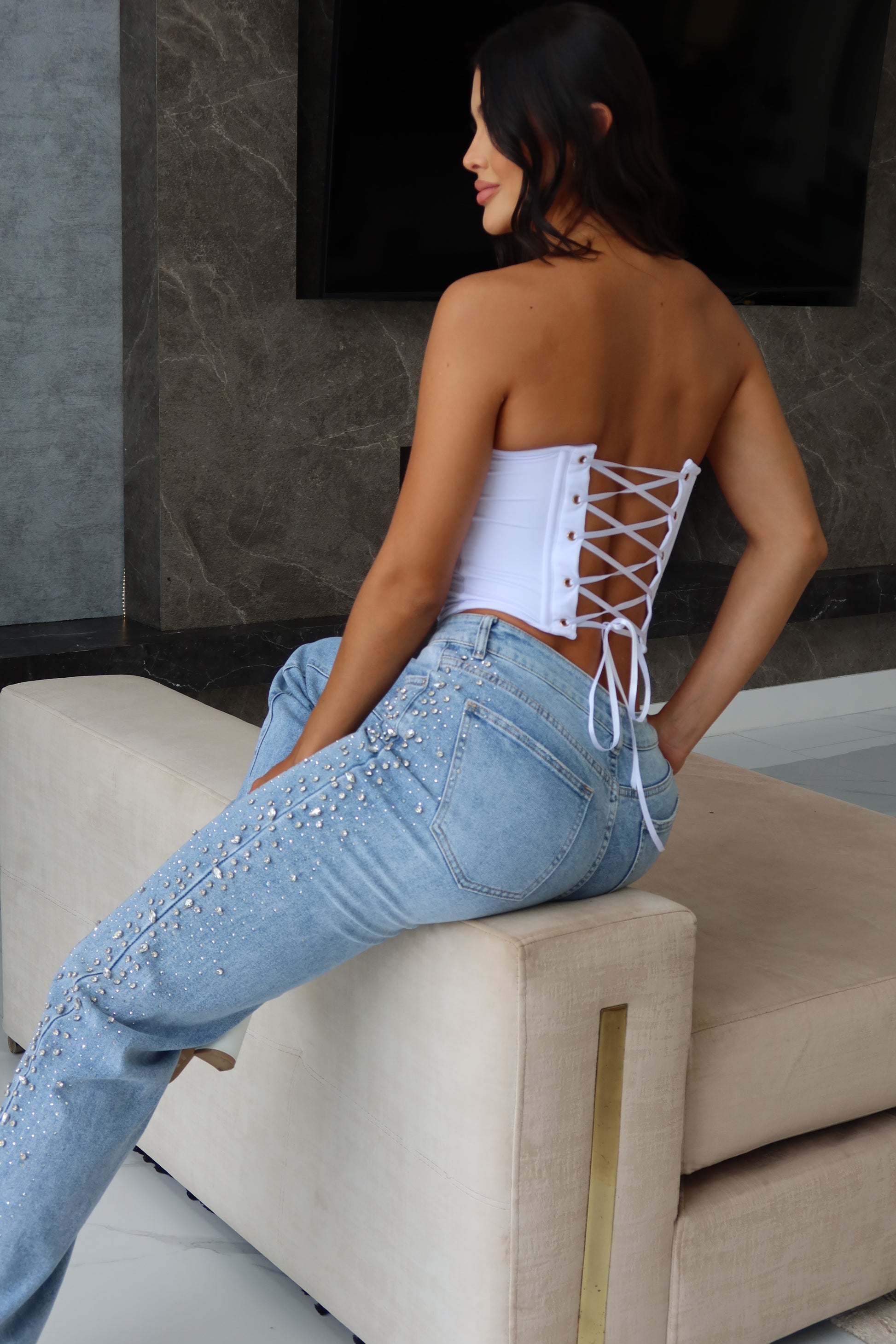 Un diseño pensado para realzar tu silueta con delicadeza y sofisticación. El corte sin tiras resalta hombros y escote, mientras el amarre trasero aporta un detalle distintivo que combina sensualidad y estilo. Es esa prenda que transforma cualquier ocasión en un momento inolvidable.