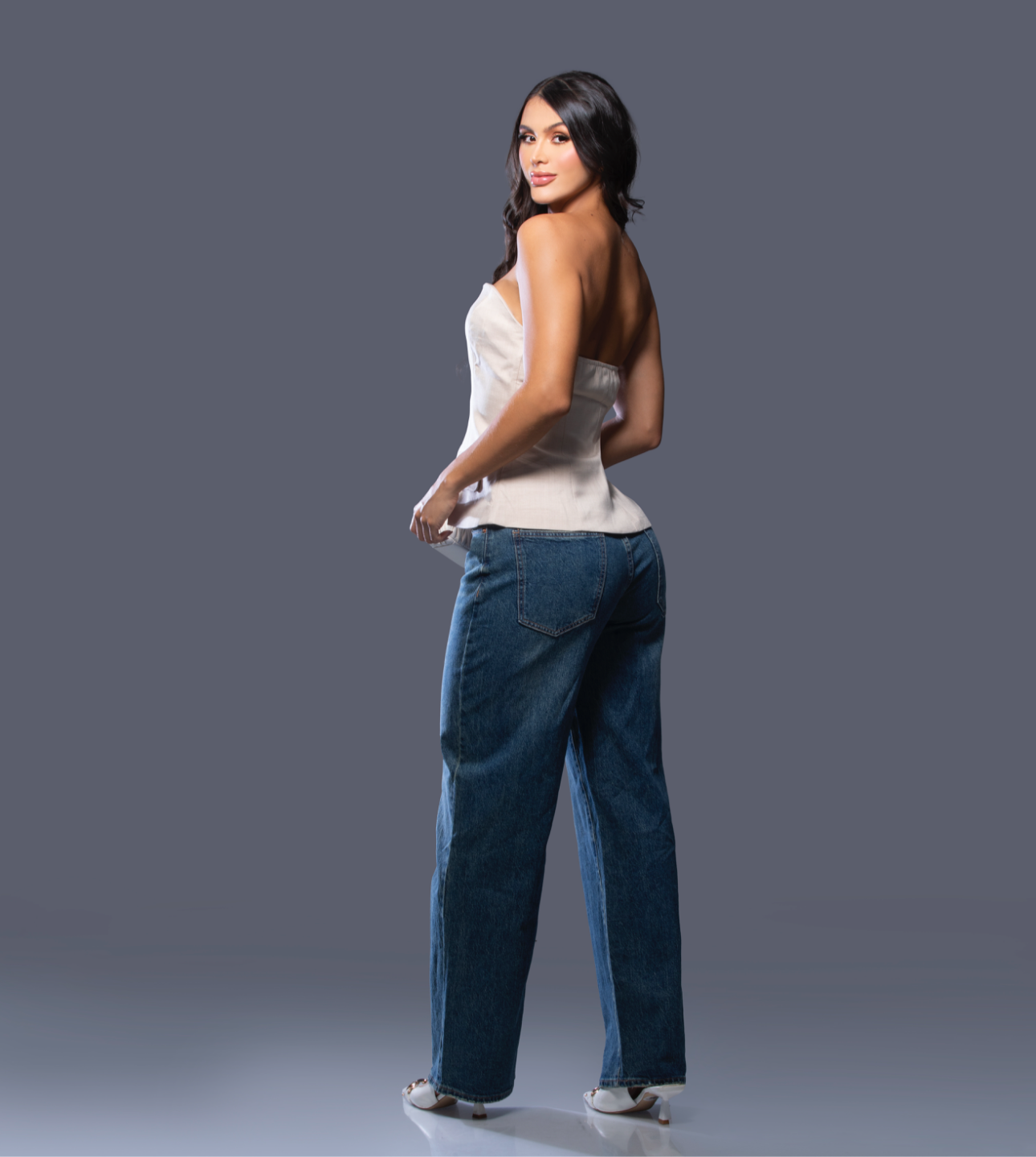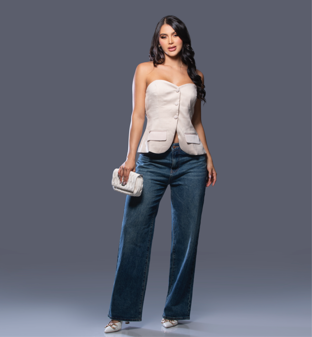 Un jean que combina lo clásico con lo moderno, diseñado para realzar tu figura con un corte recto que aporta estilo y comodidad. Es de esas prendas que se convierten en un imprescindible, porque te acompañan en cualquier ocasión haciéndote sentir segura, femenina y auténtica.