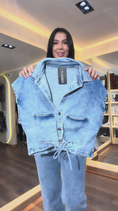El denim de alta calidad ofrece una textura suave pero firme, brindando un ajuste favorecedor que se siente tan bien como se ve. Ideal para usar junto o por separado, este set se convierte en un básico infaltable en tu clóset.